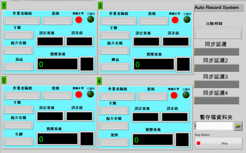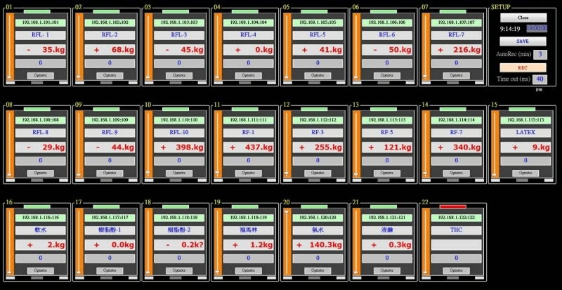 多秤台即時重量監視記錄系統、混練秤重設監控系統